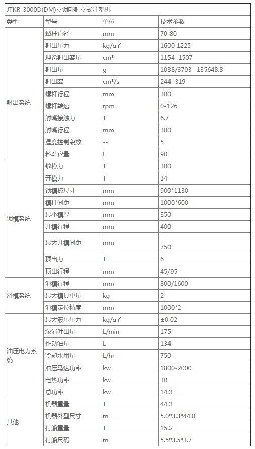 JTKR-3000D(DM)立鎖臥射立式注塑機參數(shù)