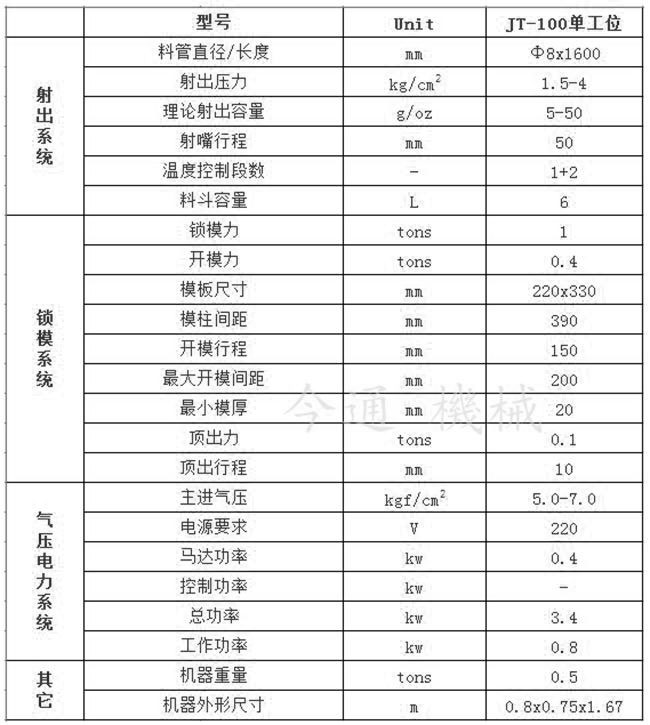 1、單工位低壓注塑機采用單工位頂式注膠系統(tǒng)。針對各種不同注塑包封產(chǎn)品所設計的機型,尤其對左右平行連線式線材出線模具設計更合理可靠。