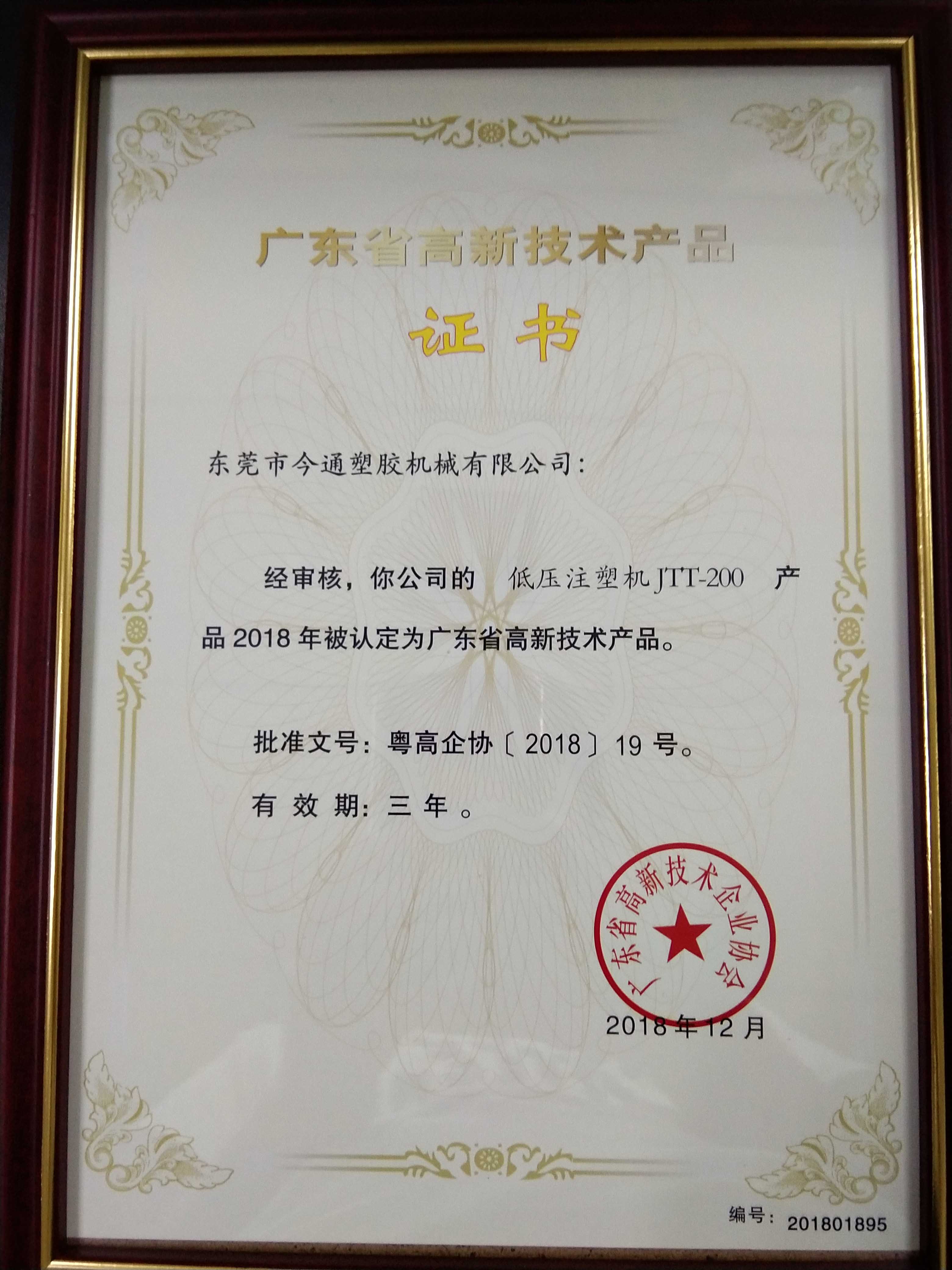 JTT-200低壓機(jī) 高新技術(shù)產(chǎn)品證書